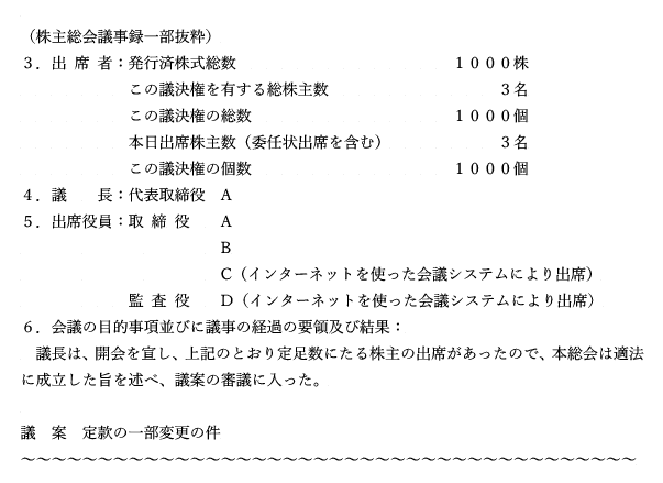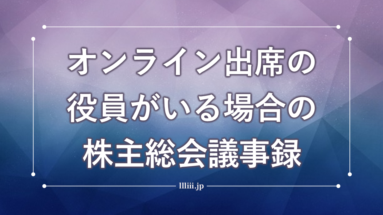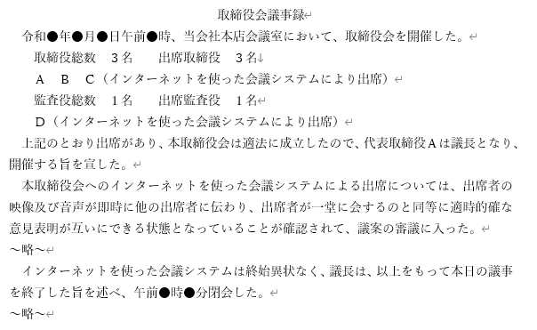 インターネットを使った会議システムなどによるオンライン出席の株主・役員がいる場合の株主総会や取締役会が増えてきました。