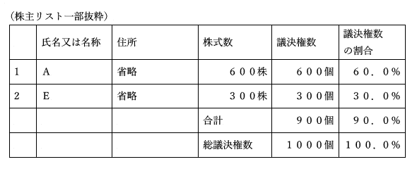 司法書士法務太郎は、ある登記に添付する株主総会議事録及び株主リストを次のような記載にして登記申請しました。 なお、株主はA・B・Eの3名です。